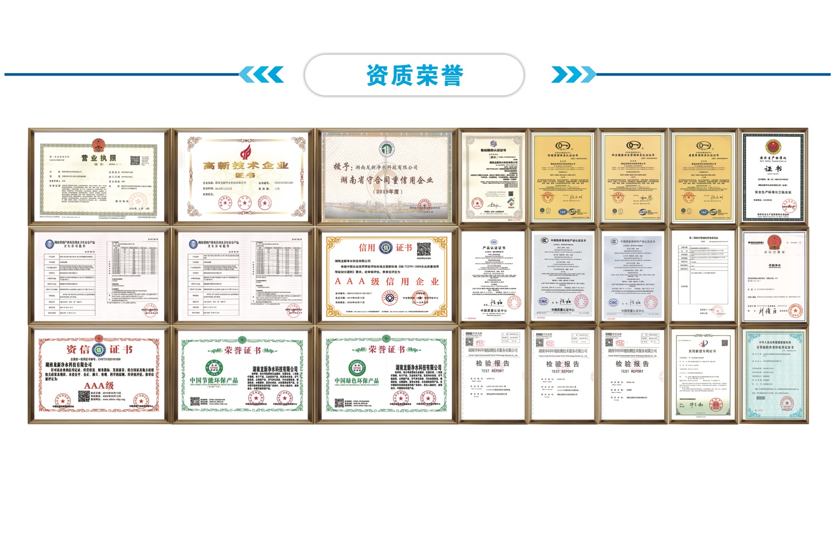 龍新凈水秉承著品質是企業生存之道,服務是企業發(fā)展之根的理念,先后通過ISO管理體系認證、五星售后服務認證、高新技術企業認證、衛(wèi)生許可批件和眾多榮譽證書及近百項國家專利技術。